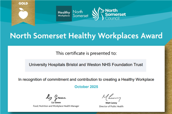 Our Workplace Wellbeing team is delighted to announce that UHBW has been awarded the North Somerset Healthy Workplaces Gold Award. This award recognises the Trust’s comprehensive and inclusive wellbeing programme, designed to support all colleagues across the organisation.