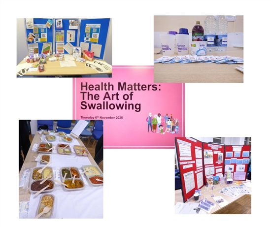 Our latest Health Matters event (6 November) was called "The Art of Swallowing" and was about the medical condition dysphasia – or difficulty swallowing. The Nutrition and Dietetics and Speech and Language Therapy teams of University Hospitals Bristol and Weston NHS Foundation Trust joined us to tell us how it is diagnosed, treated and managed in hospital. It was fascinating to hear how the teams work together to help our patients, before we got to visit stalls who showed the different elements in more detail and even try some modified diet foods!